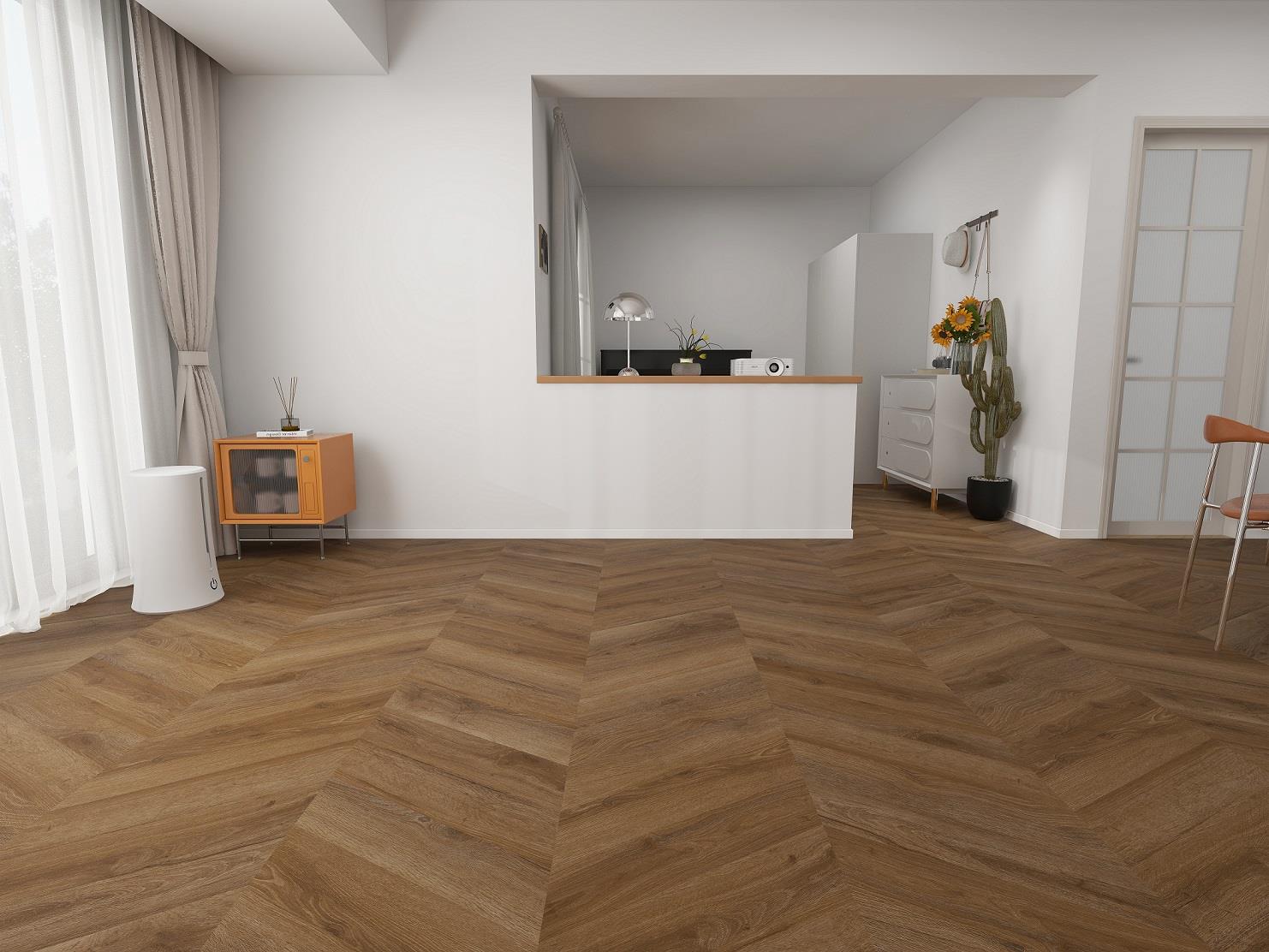 Вінілова підлога BazaLux SPC Fishbone – це елегантне рішення, що поєднує класичний паркетний стиль із сучасною технологією вінілових підлогових покриттів. Завдяки візерунку «ялинка» підлога набуває унікального характеру, який чудово пасуватиме як до класичних, так і до сучасних просторів.